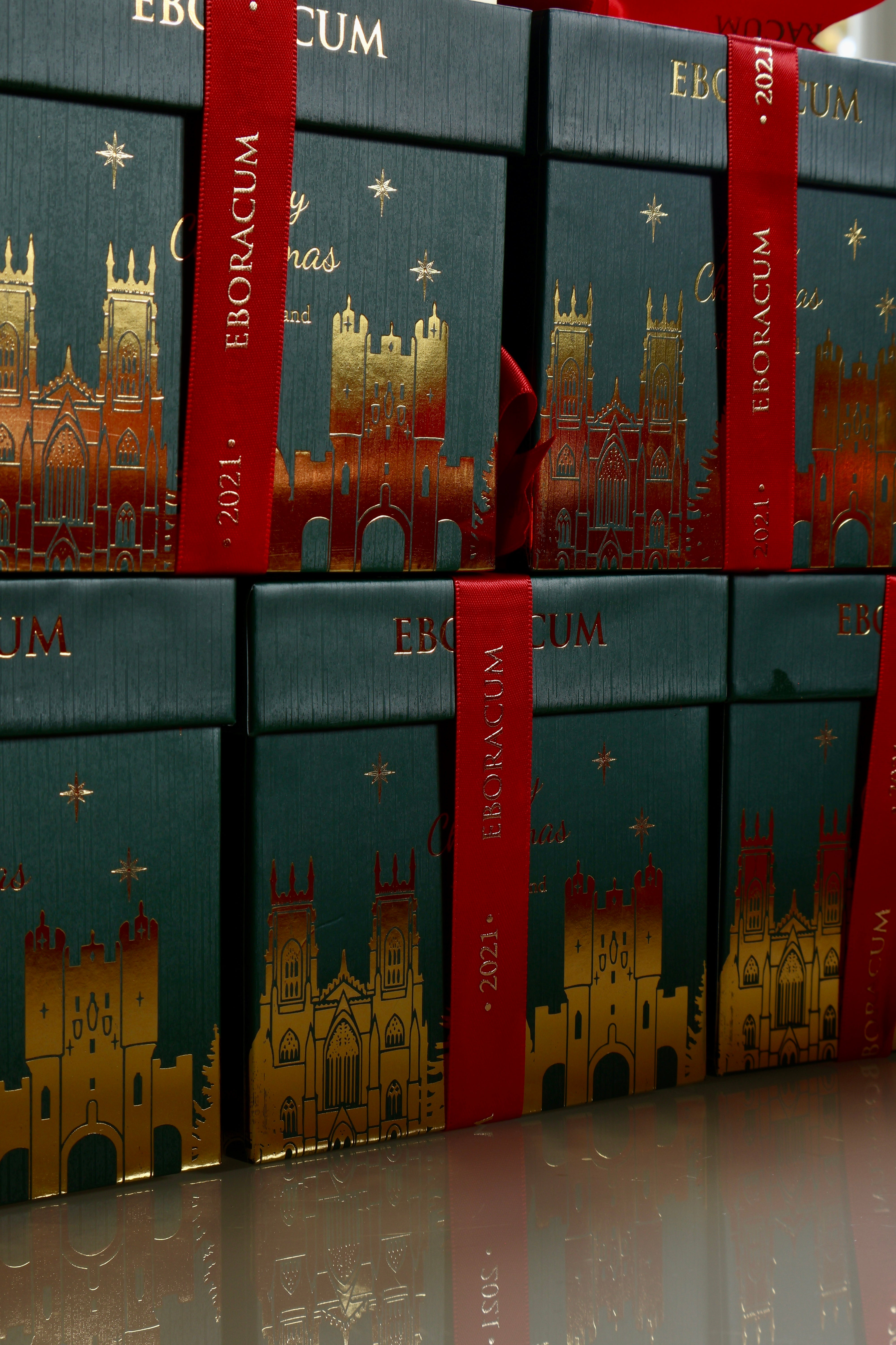 Wrap yourself in the cosy embrace of Winter Velvet — a fragrance reminiscent of a fireside evening, with clove, cashmeran, and soft musk weaving together in a warm, woody blend. Presented in frosted green glass with delicate gold detailing, this candle is housed in a luxurious green box embellished with York’s landmarks in shimmering gold foil. For an added festive flourish, we can finish it with a hand-tied ribbon, making it gift-ready for the season. With up to 45 hours of burn time, it’s the perfect way to bring a touch of seasonal warmth and elegance to your home.
